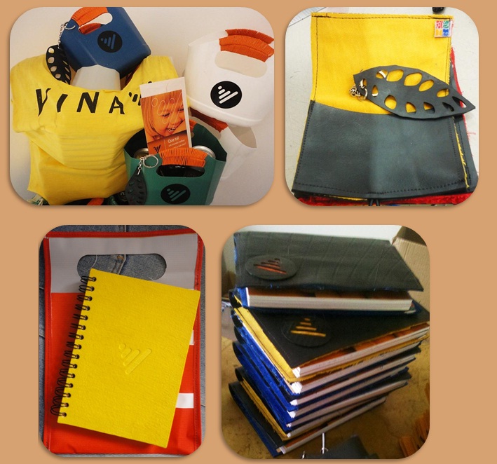 A produção dos nossos brindes de fim de ano vem priorizando a reutilização de sucatas geradas na própria empresa, como uniformes descartados e câmaras de pneu. Todo o material impresso utilizado nessas produções – folhetos, divisórias para agendas, tags – é produzido na gráfica Ekofootprint, que utiliza tecnologia ecológica à base de cera (técnica que gera menos 92%  de resíduos).